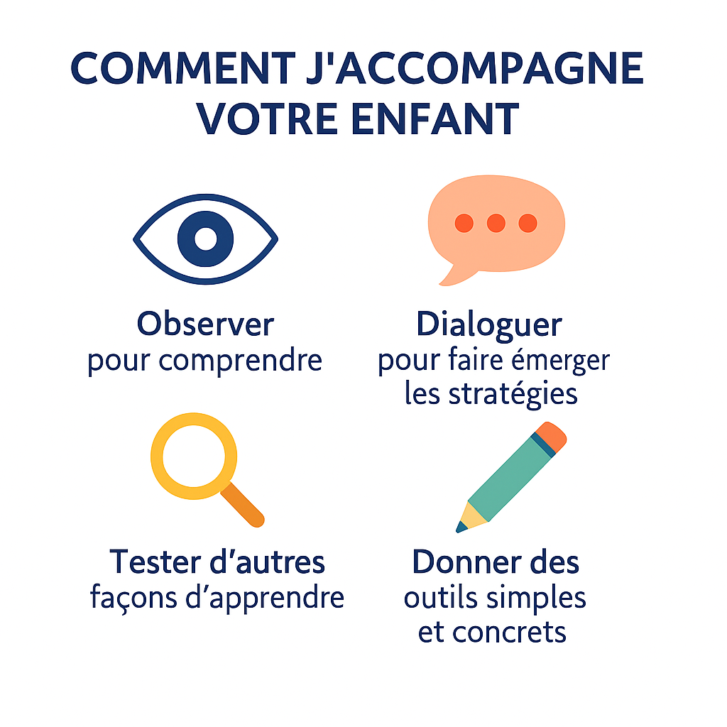 L’objectif n’est pas de “corriger” une manière de penser, mais d’aider l’enfant à mieux se comprendre, à enrichir ses stratégies, et à trouver ce qui fonctionne le mieux pour lui.