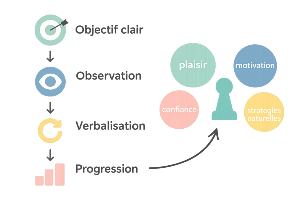 Le jeu devient un outil pédagogique, qui permet à l’enfant d’explorer, de comprendre, de s’entraîner et de progresser… sans pression.